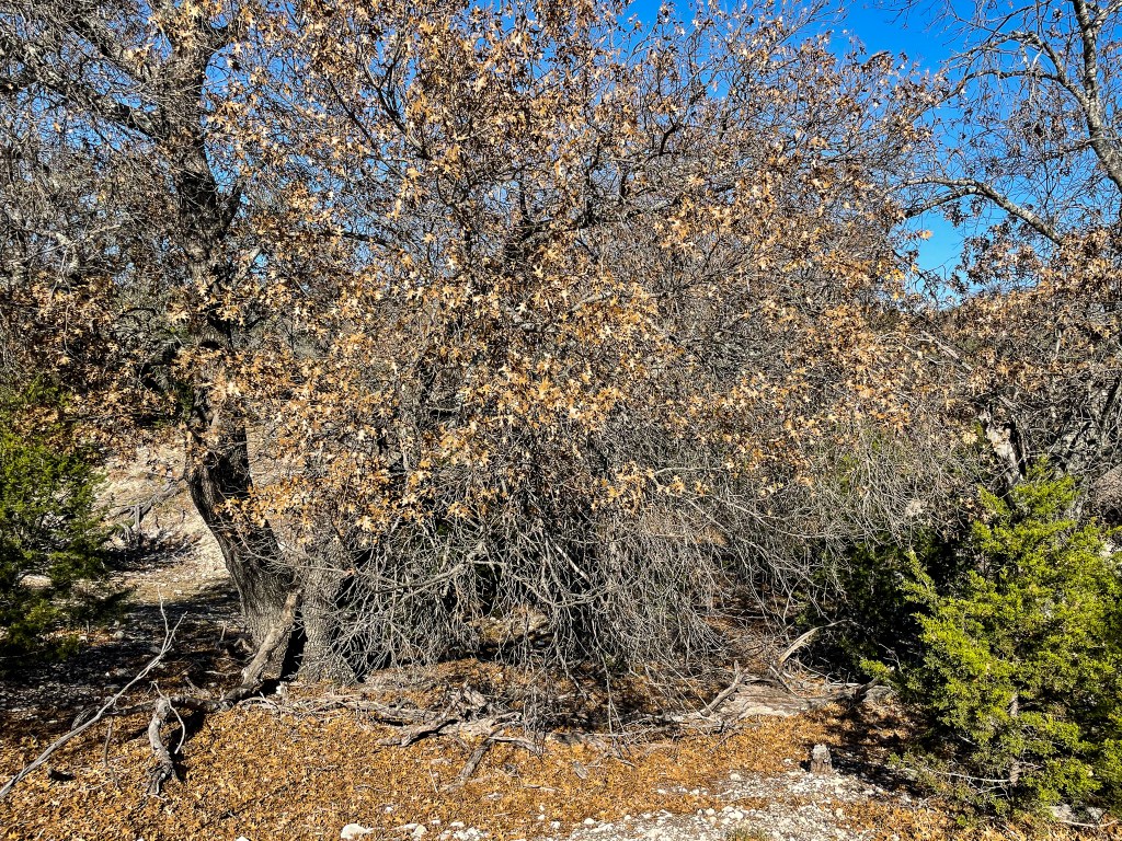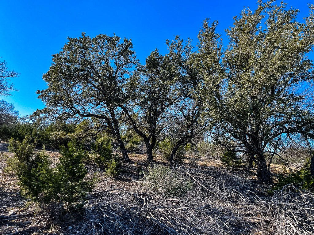 Land is perimeter fenced with approximately 2/3 of land covered in mature elms & liveoaks. Property consists of other native cover such as native grasses, persimmons, mesquites and algarita. Front of property is abandoned hay field with very productive sandy loam soils that have potential for orchards, vineyards, crops, etc.
